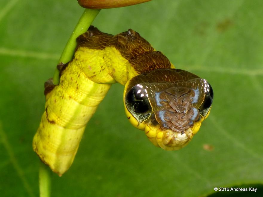 The picture above is not a snake. It’s a snake-mimic caterpillar, hemeroplanes triptolemus. Neat, huh?