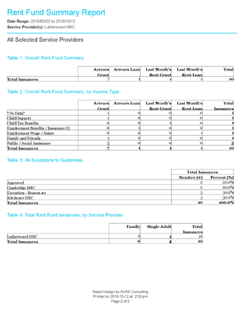 ACRE Consulting prides itself on developing quality custom reports. All reports are developed using Crystal Reports, and are able to be uploaded directly into HIFIS 4.