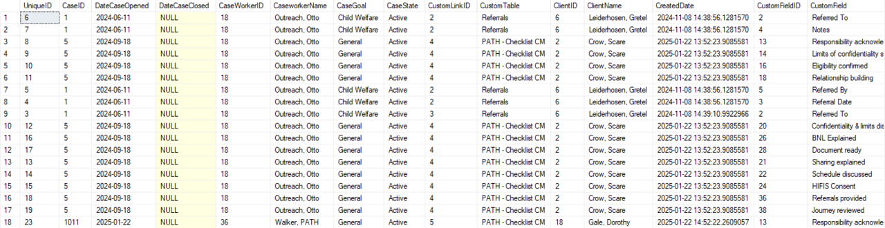 For the municipality’s CHPI reporting needs, they requested a report that will show: The number of Goals that were closed successfully versus unsuccessfully and what the goals were; How many of these goals had a Session created and what type of Session was it; Organized by case manager as well as Service Provider.